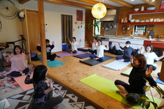 ログハウスでヨガ体験