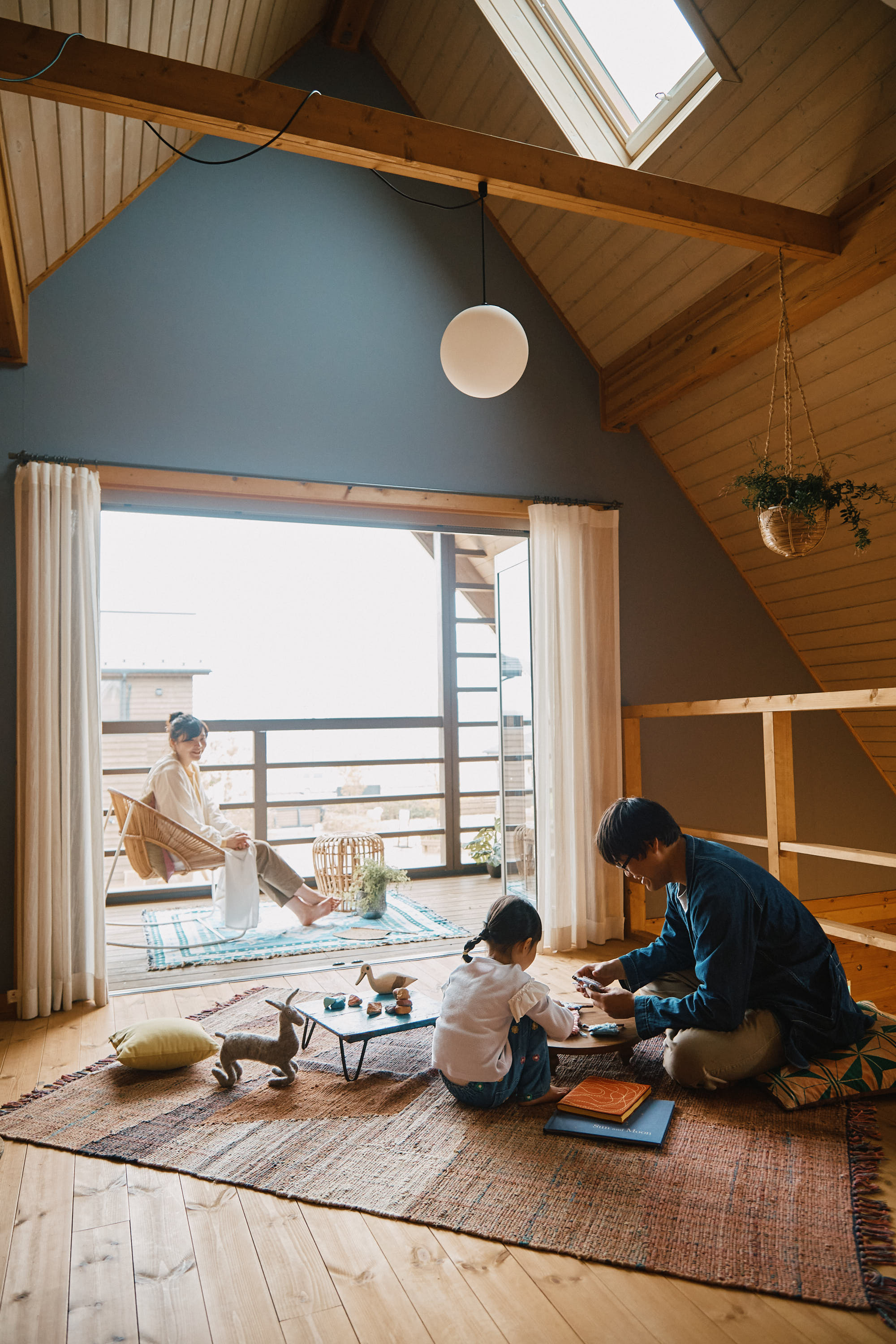 個性派ぞろいのBESSの家々は、外の印象だけじゃなく中に入ってもおもしろい!大きな吹き抜けや土間リビングでのんびり自由に過ごせます。