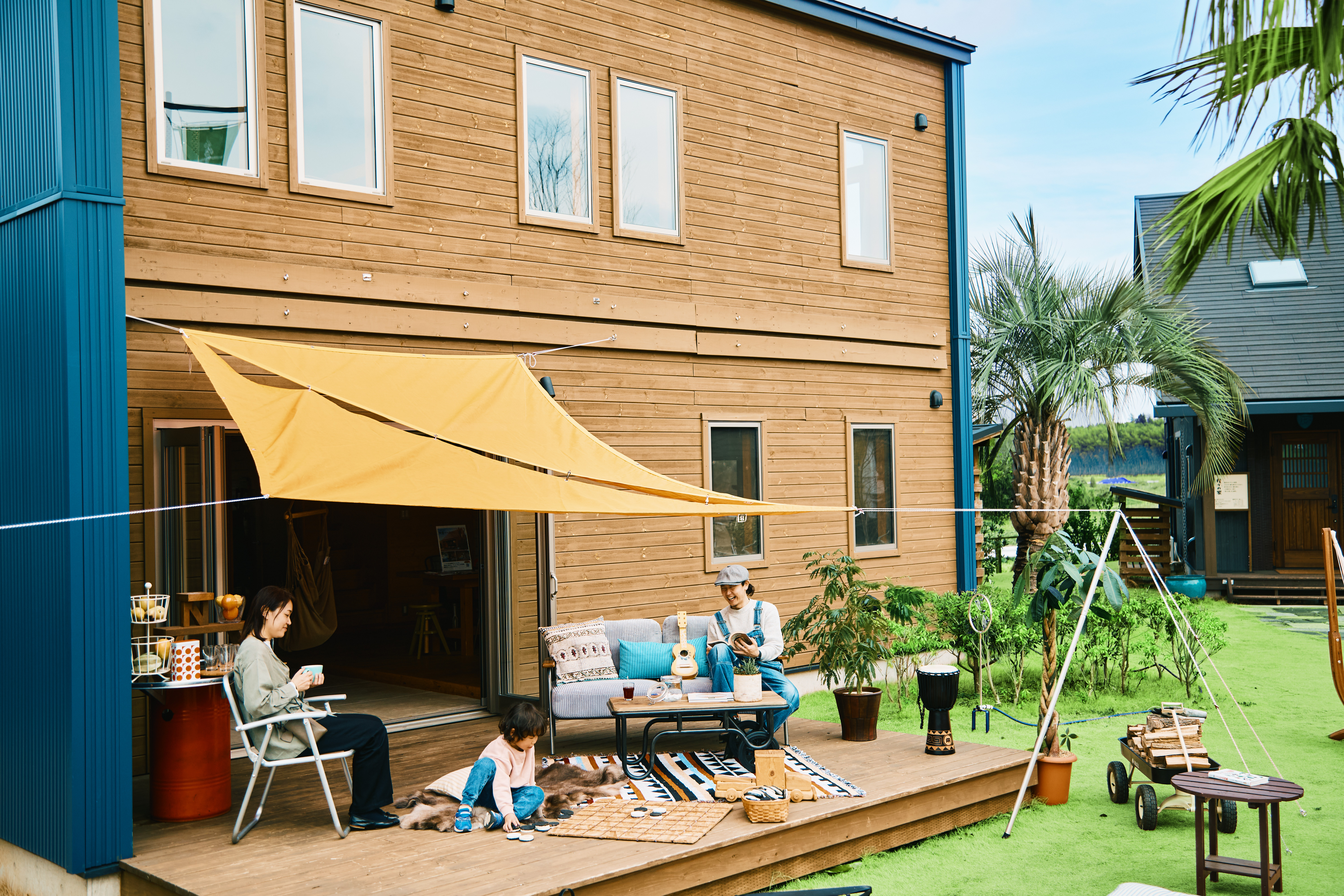 自然の木をふんだんにつかったBESSの家には、吹抜け、大きなウッドデッキ、