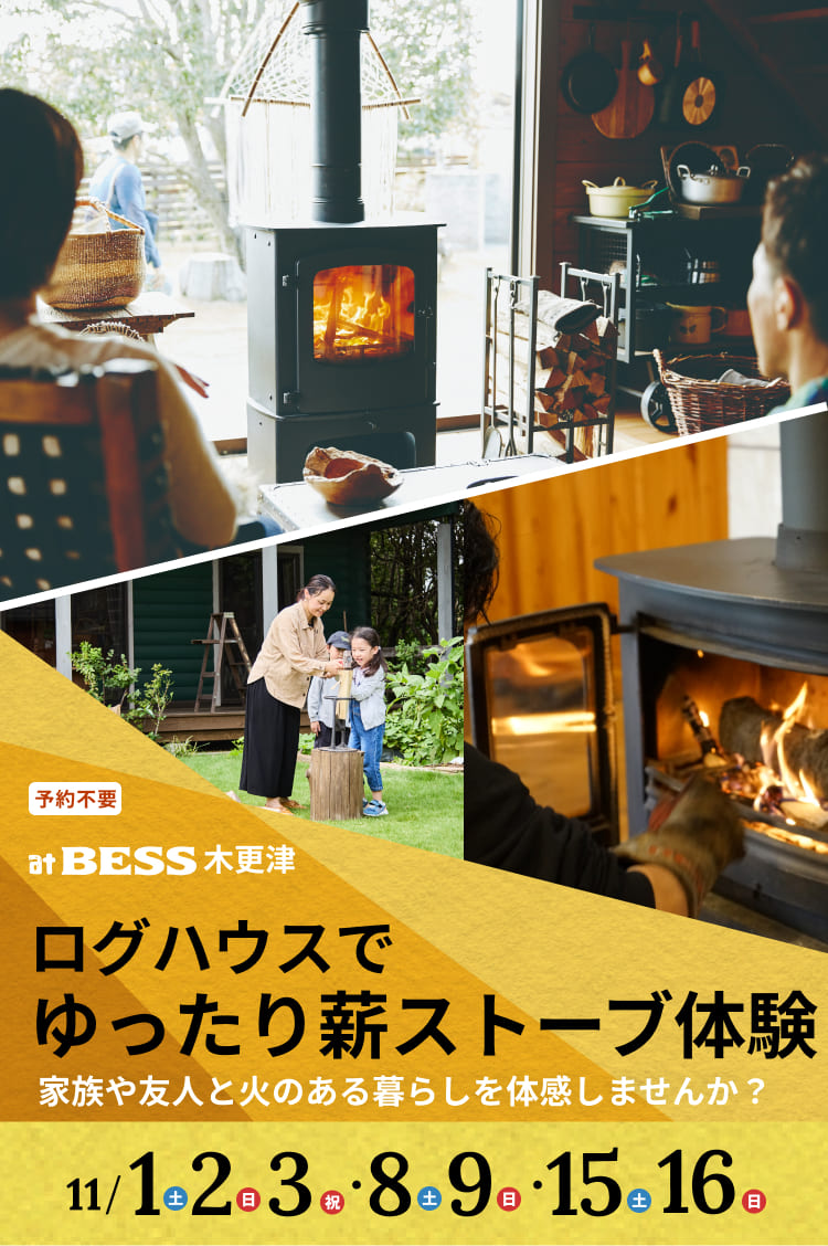 自然の木をふんだんに使ったBESSのモデルハウスで、火のある暮らしを体感しよう!